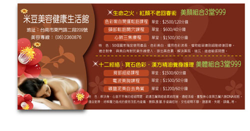 米豆美容美體健康生活館:http://www.gomag.com.tw/062360876.html