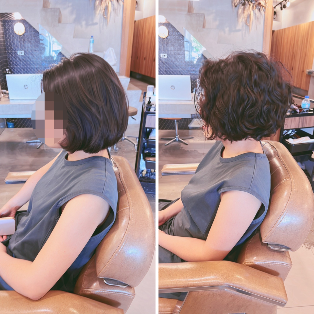 設計師非常細心地和她們溝通,了解她們想要的捲度、長度以及整體風格。像我老婆的髮質比較細軟,可以燙更為明顯的捲度製造蓬鬆感,而我妹的髮質較硬,燙一個比較自然的捲度,這樣好整理,看起來也更柔和。