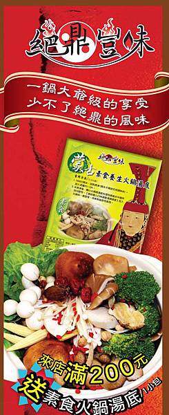 (憑券: 消費滿200,送素食火鍋湯底1包。)