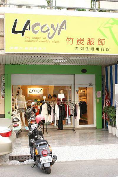 說也真是妙,明明就是賣茶葉的店,但是店的外觀竟然寫著大大的Lacoya竹碳服飾,就連店內
