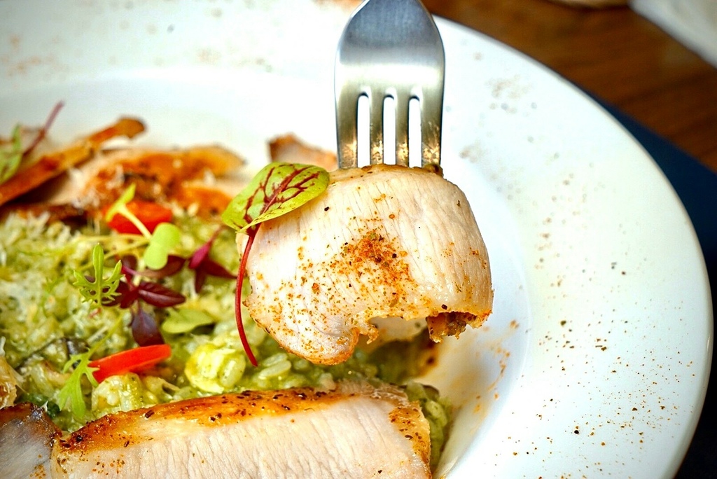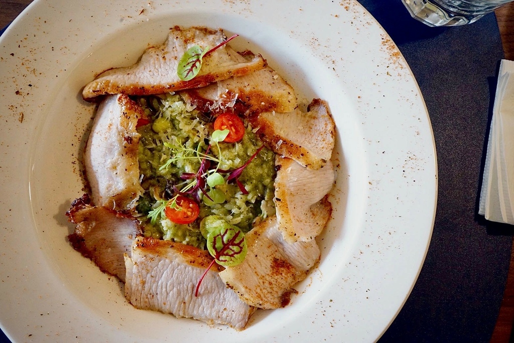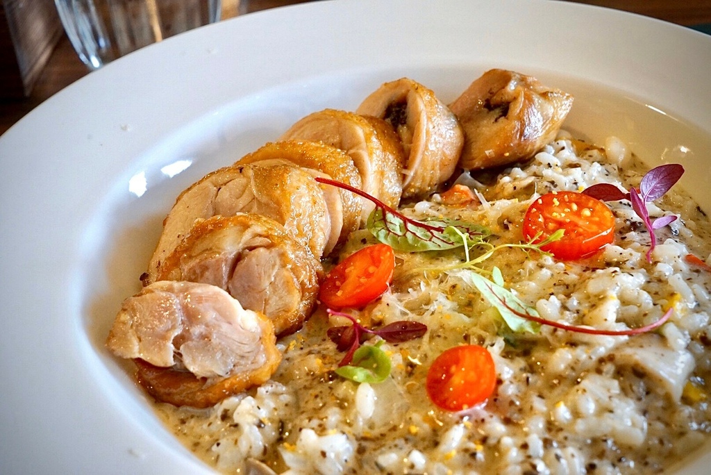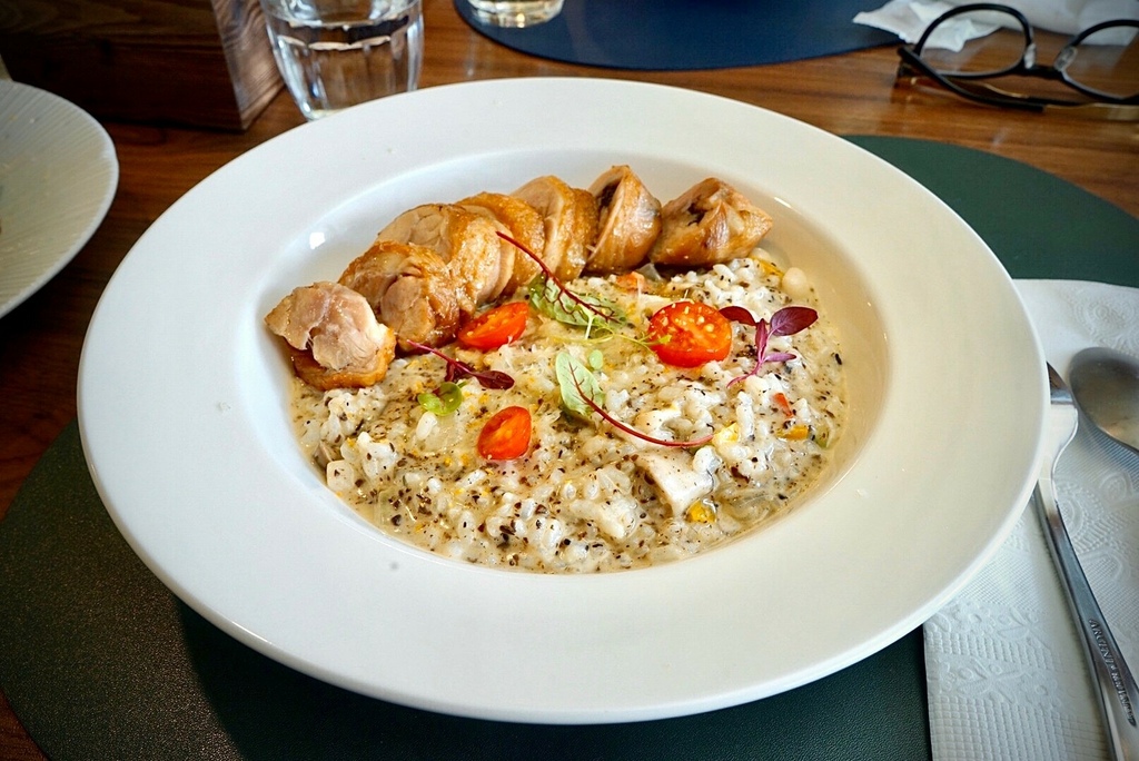 這道則使用純正義大利米烹煮,搭配舒肥去骨雞腿肉,接著煎脆表面,⼀樣的搞剛,多層次香/嫩/脆口感⼀次給你,我還能說什麼,只能說真⼼佩服職人精神。