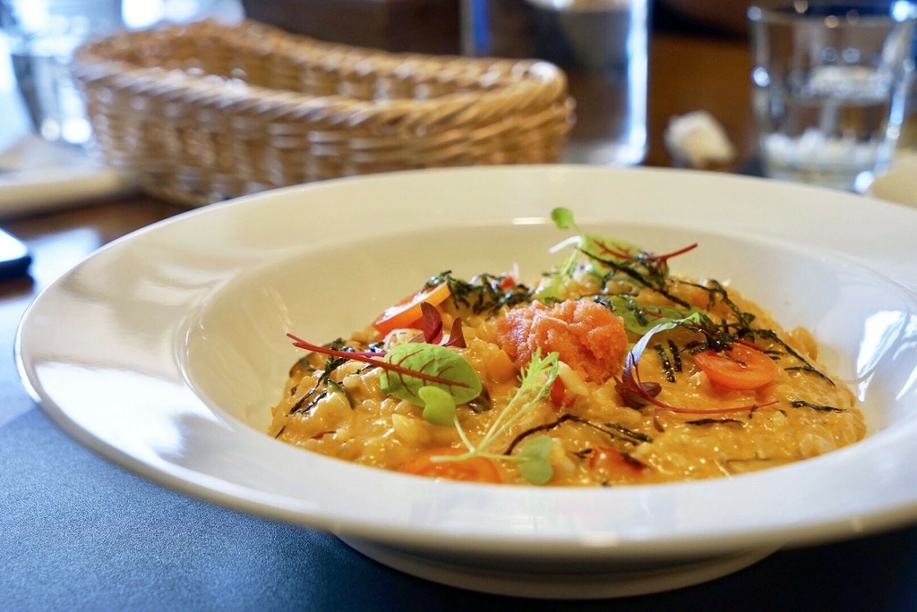 暖⼼的明太⼦跟⼀般吃到的很不⼀樣,詢問廚師才知道,他先熬煮火燒蝦高湯,再讓明太子與⾼湯結合,製成整個燉飯的主要醬汁。不得不佩服廚師您,花樣真多, 真的寵壞每個⼈的味覺。