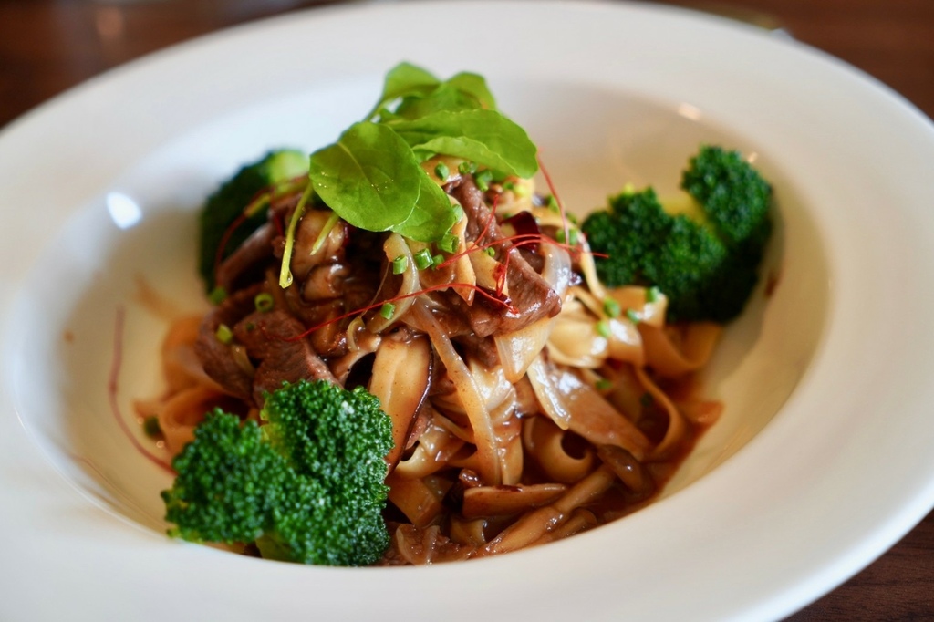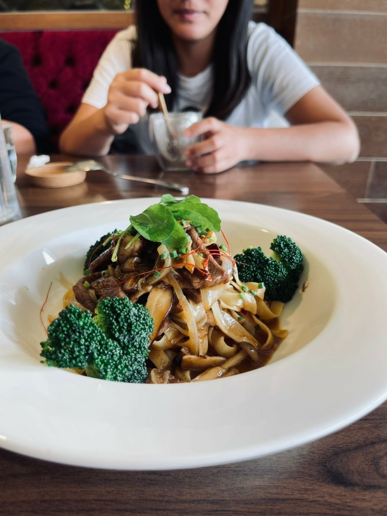 微微的辣味夾帶著菌菇醬汁的香氣,完全綁架了鳥巢麵!無意間⼀⼝接⼀口!每片⽜肉厚度剛好的尺寸,每⼝咀嚼輕鬆不卡牙,⽜肉韌性⼗足,⼝感極佳。