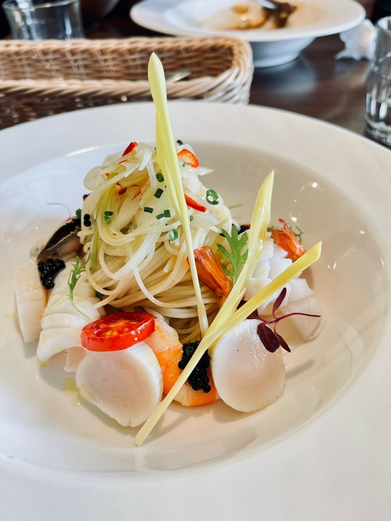 這是⼀首霸氣海鮮詩歌,已經開始炎炎夏⽇的序曲,冷麵就悄悄開始上妳我的餐桌上,清爽是首要任務,順⼝是次要目標,日本生食級干貝,馬祖的淡菜,新鮮甜蝦,澎湖花枝則是單純想寵壞你的美食標準。