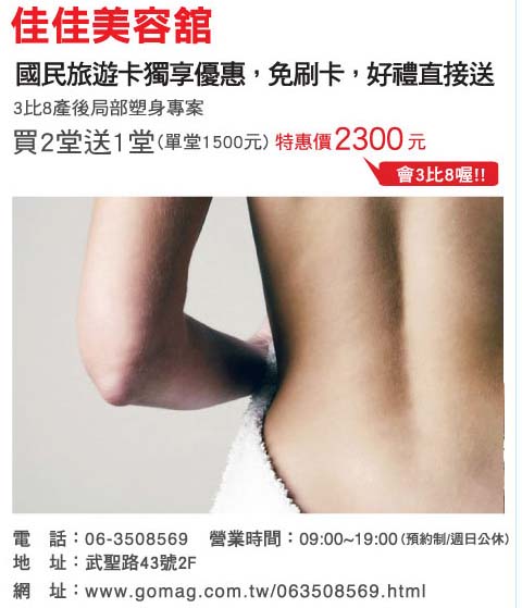 台南產後塑身:佳佳美容館-產後局部瘦身 買2堂送1堂