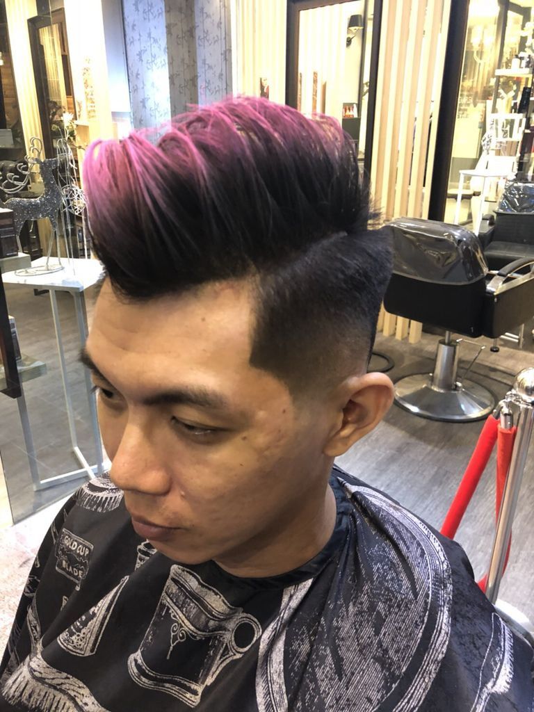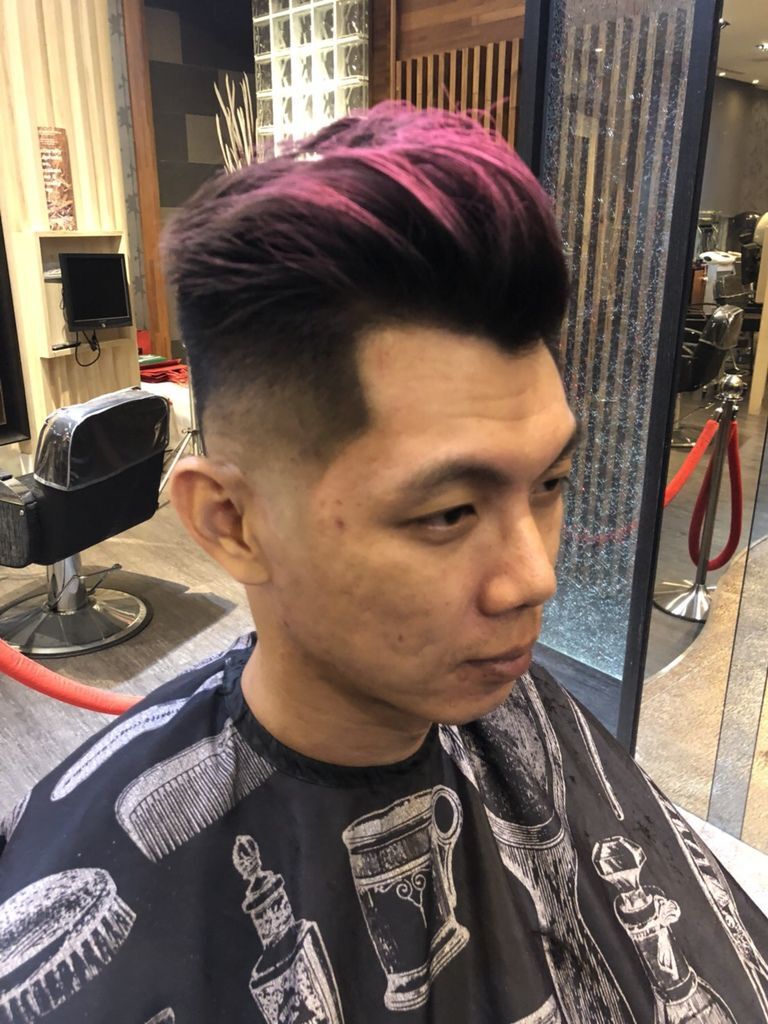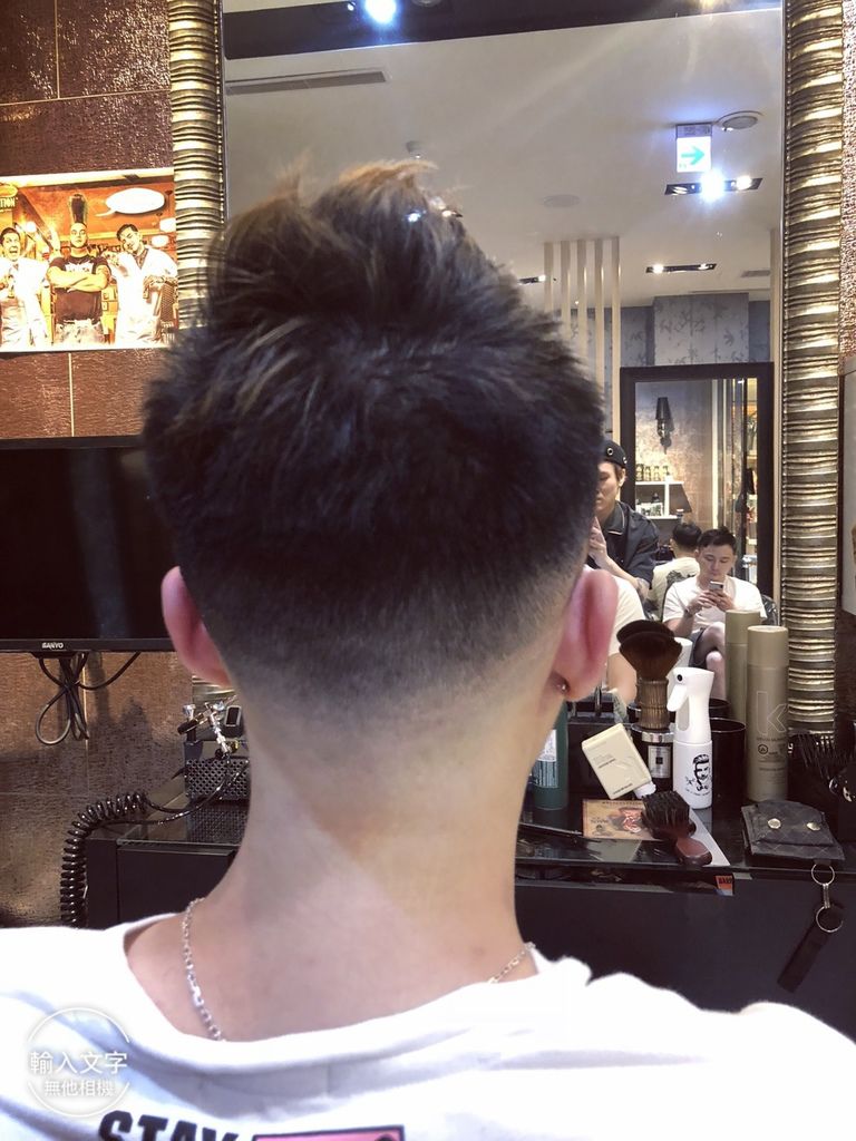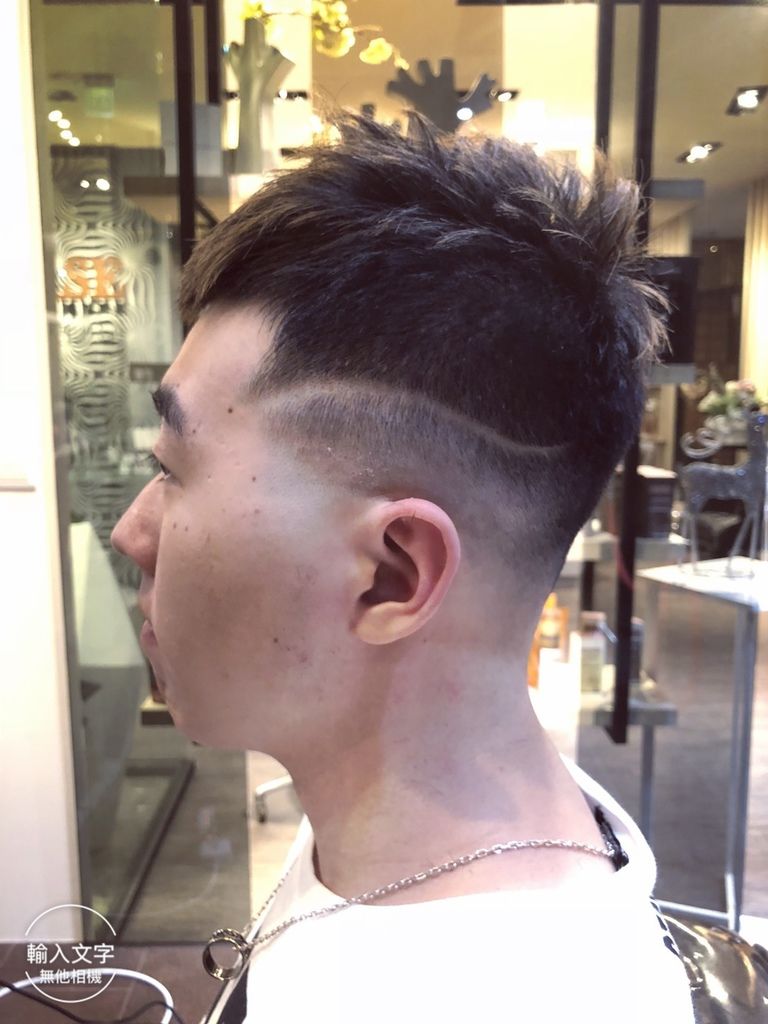 就在小帆和Gary討論時,我發現旁邊這位先生的髮型也很有型,原來也是出於Gary的手藝。Gary介紹到undercut(即兩側的頭髮往上推薄)在今年仍然很流行,但因為已經流行很多年了,所以利用頭髮割線、圖騰造型來做些變化,雖然只是簡單的線條,但可以讓造型上有很大的不同。