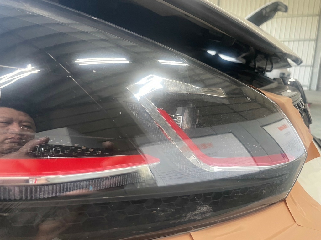 所以老闆幫我做這樣:golf 6代改7.5代的副廠大燈,需要兩天施作時間,車子就放在老闆這裡。