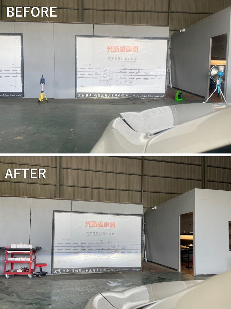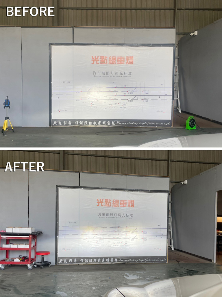 完工後再檢測一次魚眼切線水平,對向不刺眼,以及車燈亮度是否有達到標準!老闆很細心檢查了好幾次,確定每一個都是最好的角度!