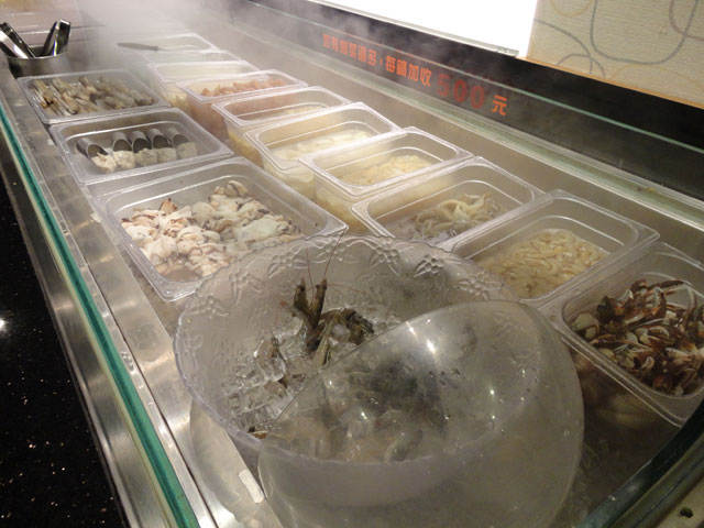 海鮮區,到是他們的海鮮還蠻多選擇的,蝦子雖然被冰鎮,但還活著的,當夾他時還看的到他在小小的抖動