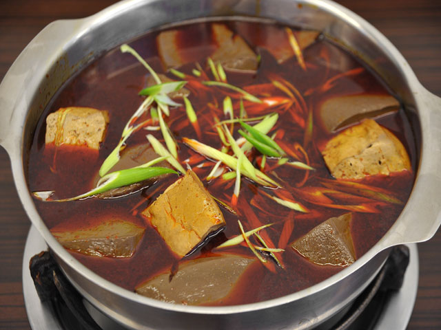 來看看我點的鍋吧!! 我點的是麻辣鍋,拍完回來看到我的鍋有嚇到,鴨血跟豆腐好多喔~~~~