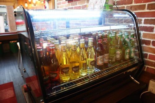 櫃檯旁的冰櫃放著酒精飲料,來這邊吃飯想要配點酒(也行!)。