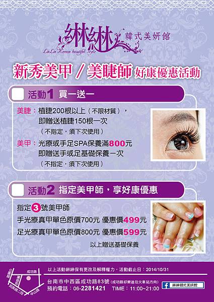 指定3號美甲師,手光療真甲單色700元,優惠價499元;足光療真甲單色800元,優惠價599元
