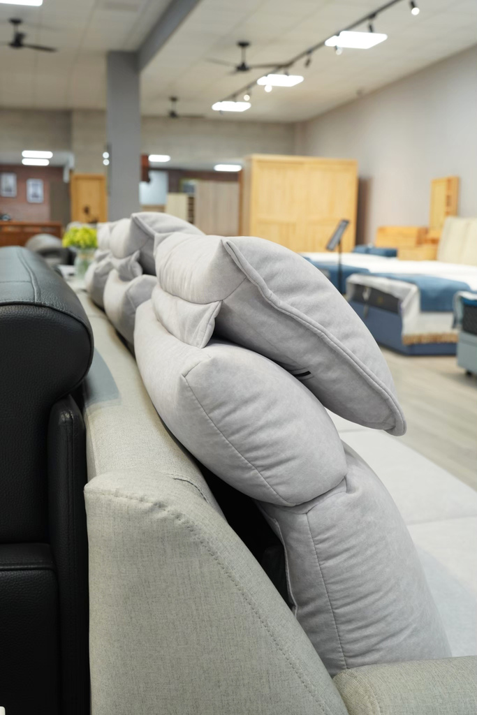 這組三萬初頭。材質是貓抓皮/貓抓布,看自己想換成哪一款顏色,像我就很喜歡可以客製化的沙發,可以跟別人不一樣!這組椅背配了小枕頭,想放鬆脖子的時候擺上去,不需要也能放回去。