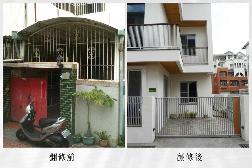 ▼房子那些花裡胡哨的弧形啊、水泥窗沿啊,全給拆了,用泥作改為直線造型,整棟透天變得更加輕盈。設計師朋友說「簡約就是美」,把房子弄得方方正正,換新的鋁色鋁窗搭配房子的白色,簡單平整顯得乾淨有精神。我們一開始還不太習慣,不過現在看久了,覺得還挺清爽的,非常經典耐看!