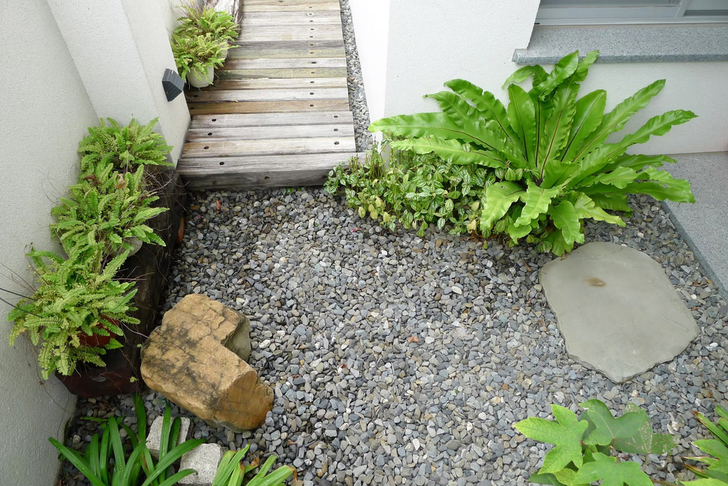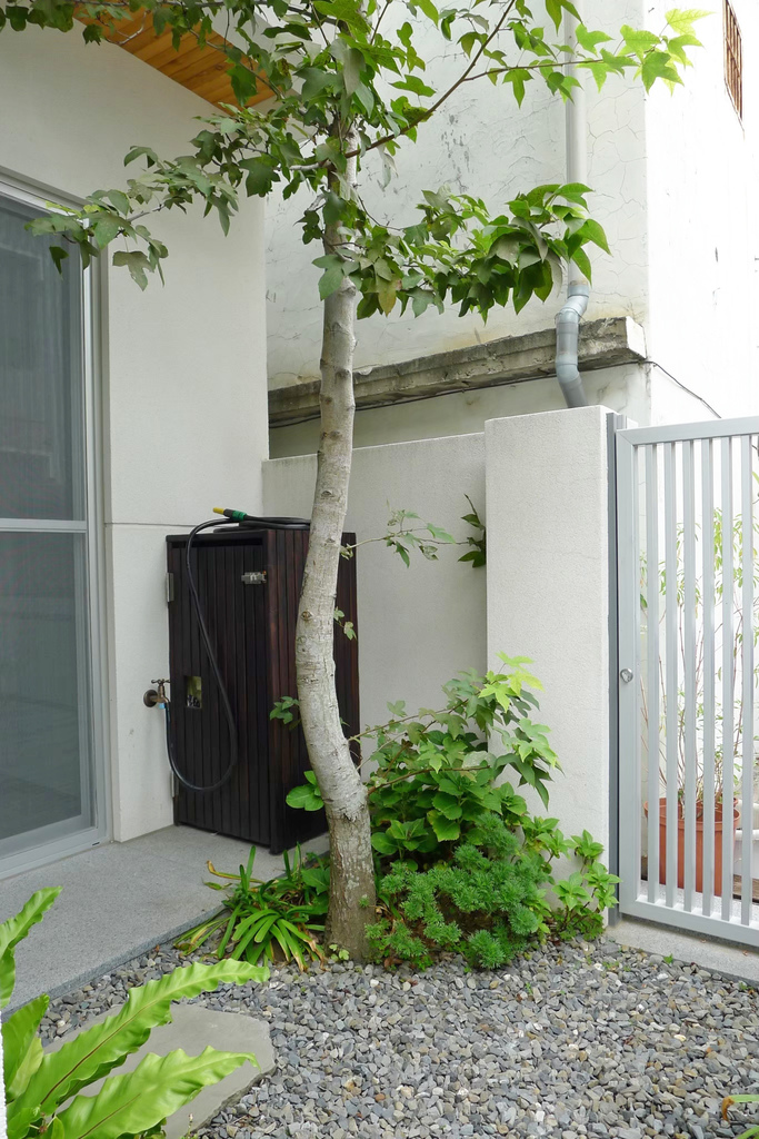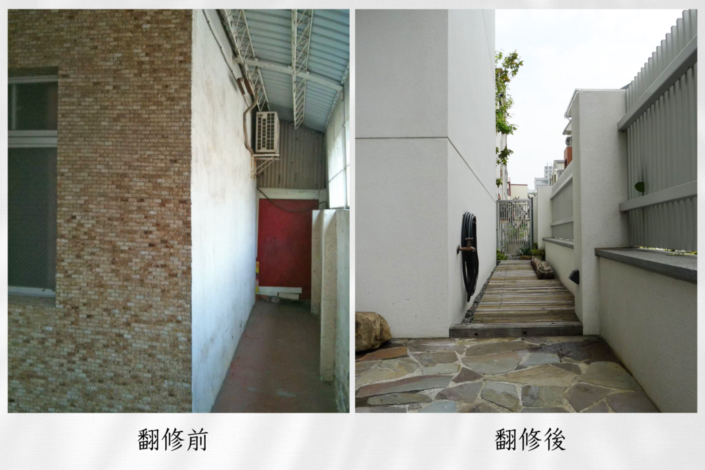 ▼最讓我們滿意的是,他還把一樓的加蓋屋頂拆掉,改成了花園和車庫,車庫拉門搭配鋁格柵的設計,讓陽光也能灑進來,整個房子都亮堂多了。現在啊,我老哥來台南時,每早都能在自家花園裡喝杯咖啡,感覺生活真是愜意。