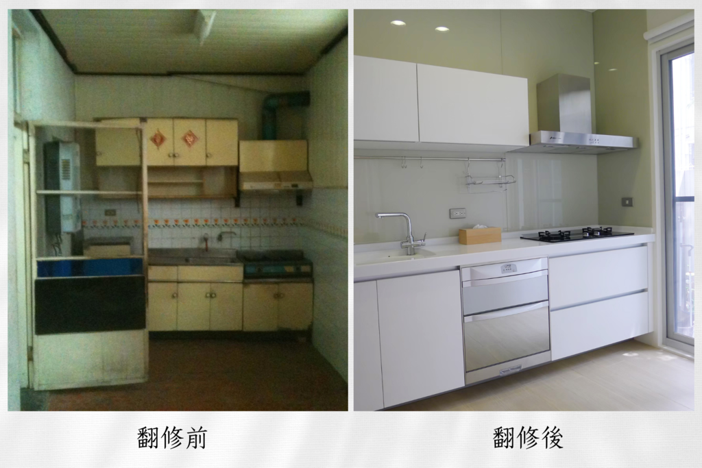 老屋真的有很大的可塑性!以前的房子又小又擠,經過設計師朋友重新規劃,現在看起來寬敞多了。那些老舊的櫃子全都被拆光了,換成了一個大空間重新進行了配置調整,將廚房、餐廳、客廳連結起來。