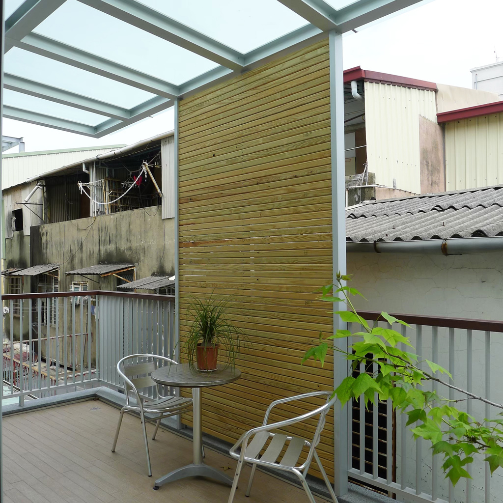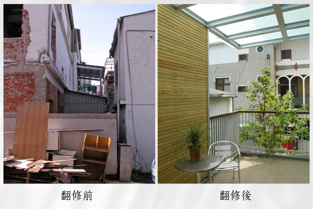 將原本廚房屋頂閒置的空間重新規劃,打造了一個多功能的半戶外休閒平台,現在可棒了!可以曬曬太陽、喝喝茶、種種花草,感覺就像在自家後院一樣。而且還可以把衣服拿出來曬,一舉兩得,空間利用率高多了,一點都不浪費。