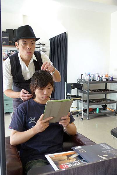 討論了一下,表弟大致上也決定要怎樣的造型,設計師也趁著他在翻資料時,