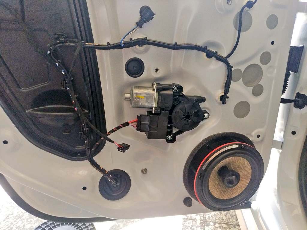 第一天先處理前門,拆卡扣、拆飾板,老闆看到原本的線路還吐槽了一下「有點亂」,然後就很順手幫我整理好,這點我超愛──因為很多店家是不會幫你收線的,只會「能用就好」。