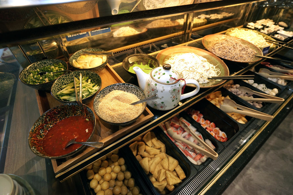 場地的中間有個冰箱櫃,這一面是火鍋料、冷麵區。