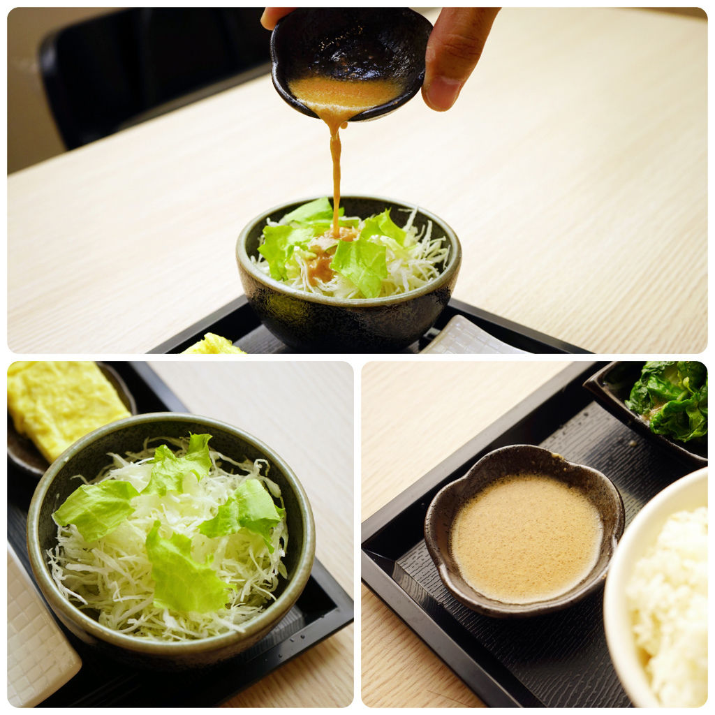 這是我的可樂餅定食,由於油炸類的主菜會需要一些高麗菜絲來平衡口感,所以老闆直接放了大把的高麗菜絲在旁邊。一旁白飯上的芝麻,還隨著白飯的熱氣擴散出來,每個小細節,都讓人感覺不出這居然只是價值 139 元的套餐。