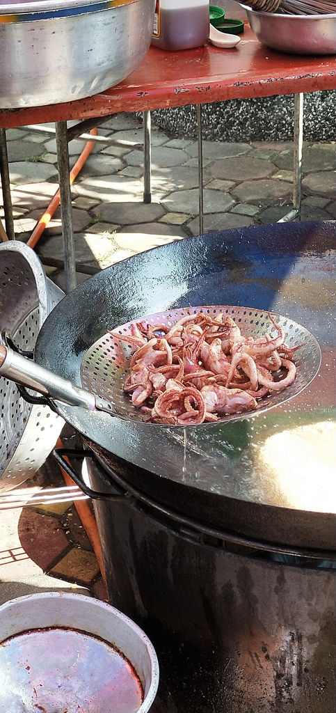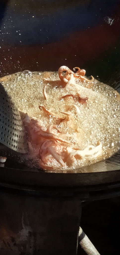 在美好的陽光下,看見金黃透徹的油和食材在鍋中交互作用著,我忽然懂得小泉師剛剛的堅持了!