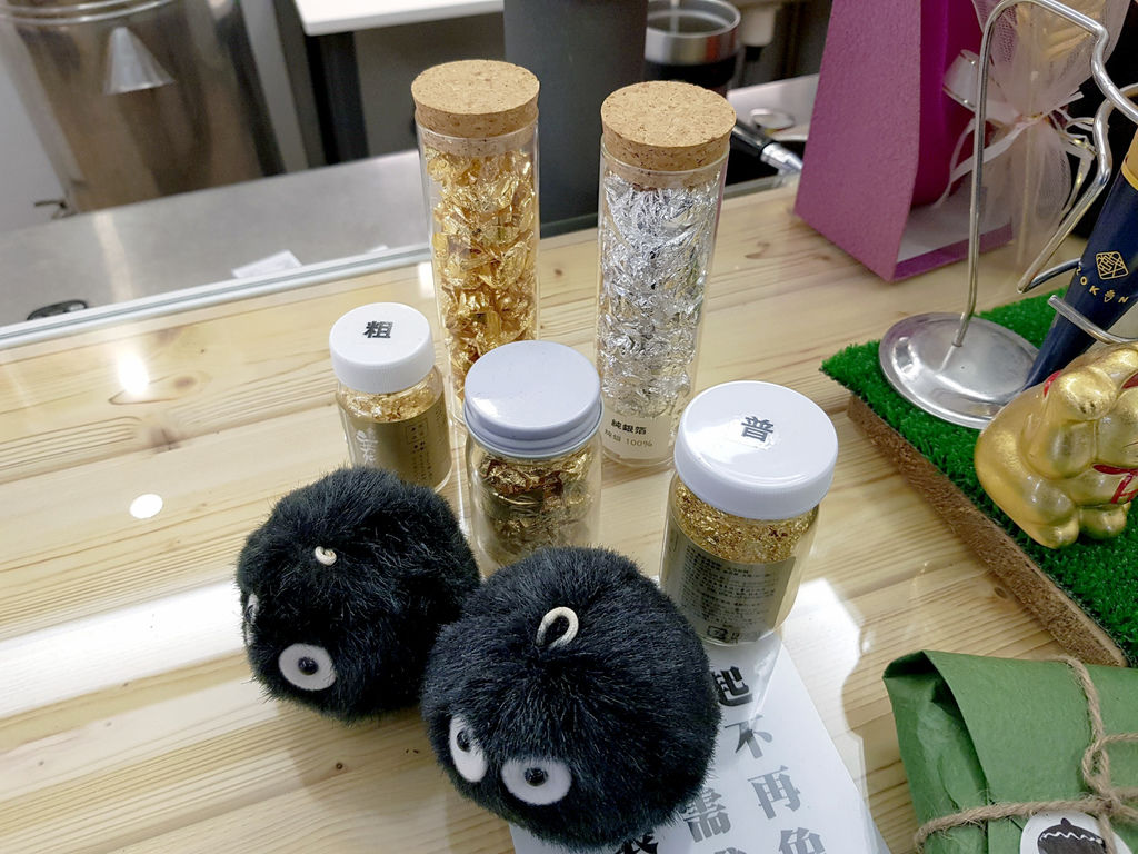 發現各種類型的金箔跟銀箔。老闆說他們所提供的金箔都是從日本最大金箔產地-金澤所進口的食用級金箔,雖然成本不低,但所呈現質感跟口感都是一般劣質金箔所望塵莫及的。
