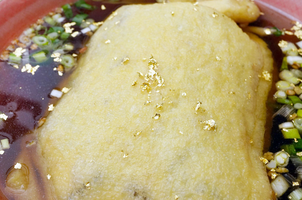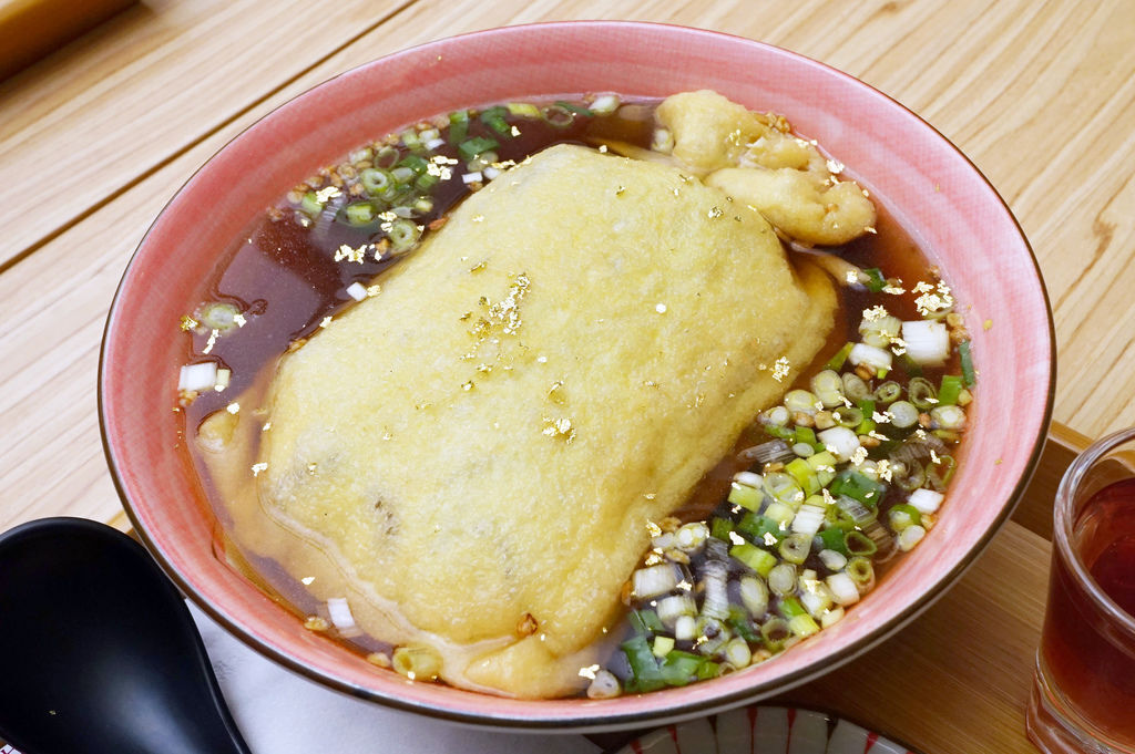 大嫂點的炸豬排福袋豆包烏龍麵,看起來超好吃的啦!店家下手很大方,一樣是灑滿閃亮的金箔。沒想到竟然可以在台南吃到日本當地的特色料理,充滿風格的外表,還沒吃就相當吸睛。福袋也剛好跟年節有所連結,感覺吃下去福氣也跟著加滿了啊!