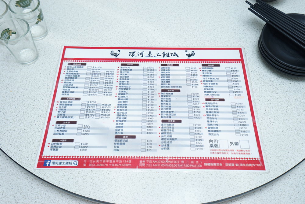 之前一直下雨又變冷的那陣子,我們公司都加班到九點多,下了班的那時間跟那天氣實在很難找到合適的地方吃飯,本來我跟另外兩個同事是要去吃安平薑母鴨,但很不湊巧的,有女同事不方便吃,所以我們就改吃隔壁的環河邊土雞城了。但這間環河邊也是我家滿常來吃的一間餐廳,裡面的土雞料理可不比關子嶺跟月世界的土雞城來得差!
