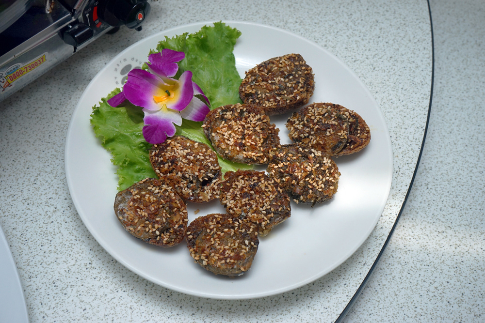 香鬆皮蛋是我們家來吃必點的,皮蛋先炸過,淋上照燒醬再加上香鬆,整個吃起來甜鹹甜鹹的,很下飯呢!