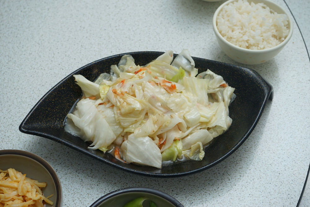 他們家的炒高麗菜很好吃,味道鹹度都很剛好,不會像有的熱炒店很死鹹。吃起來有水份也很清脆,裡頭還有放櫻花蝦一起拌炒,多了個香氣。