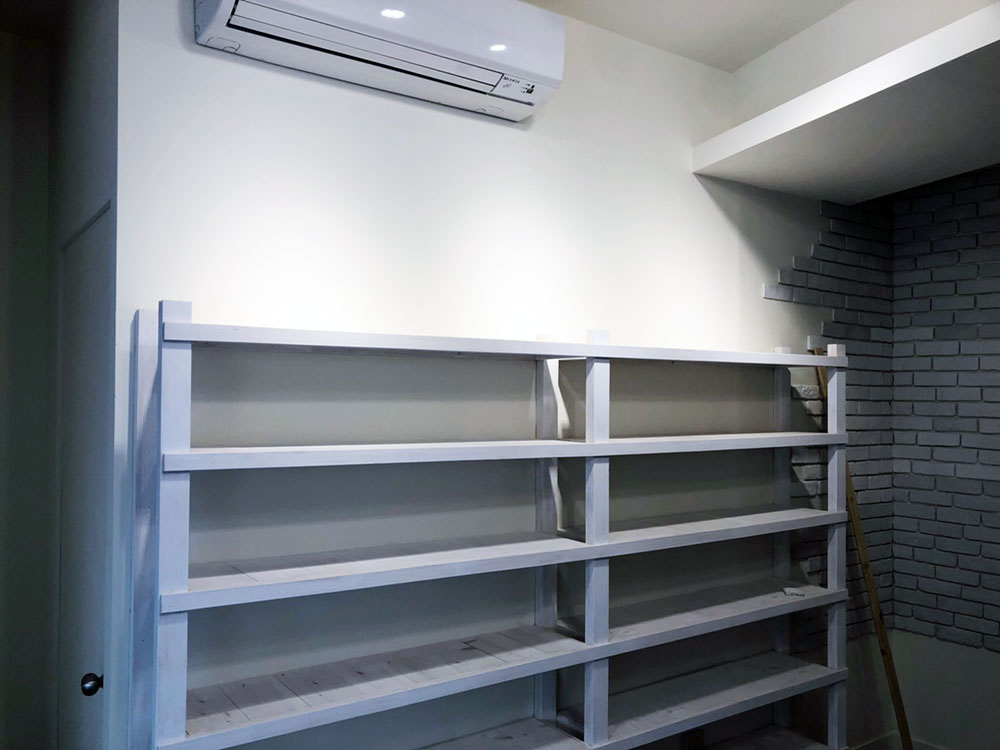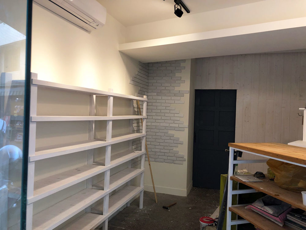 粉刷完成後老屋彷彿變新房,簡單的幾個配色,不單調而有變化,加上木紋與磚塊的點綴,整體全白色系也讓店面乾淨明亮!