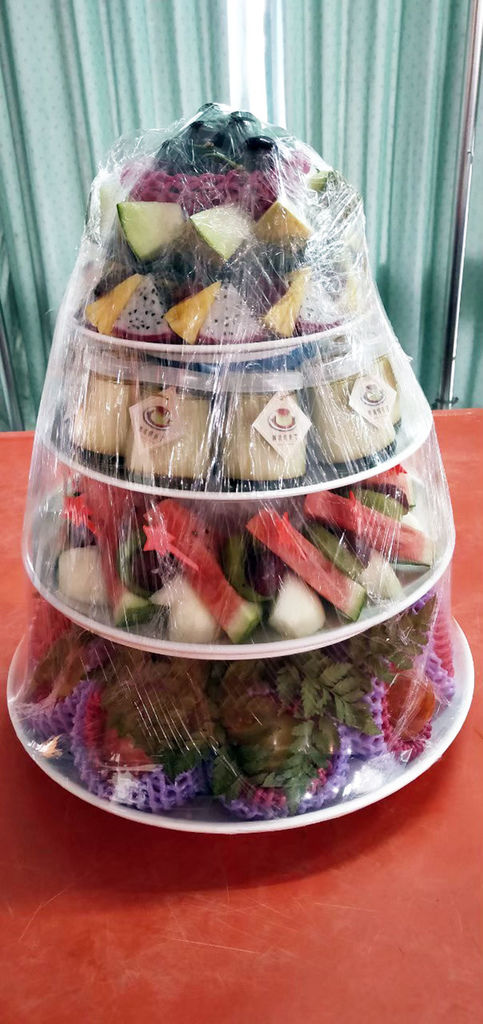 最後是水果甜點拼盤,五層以上的高度,水果多樣,還都幫你搭好了!