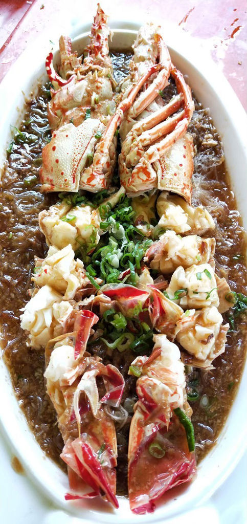 蒜茸龍蝦焗粉絲,龍蝦的份量也是夠大隻!這樣一盤應該價值不菲,蒜味剛好不會嗆,龍蝦的肉質鮮嫩細緻!加上冬粉吸附了湯汁,入味可口!