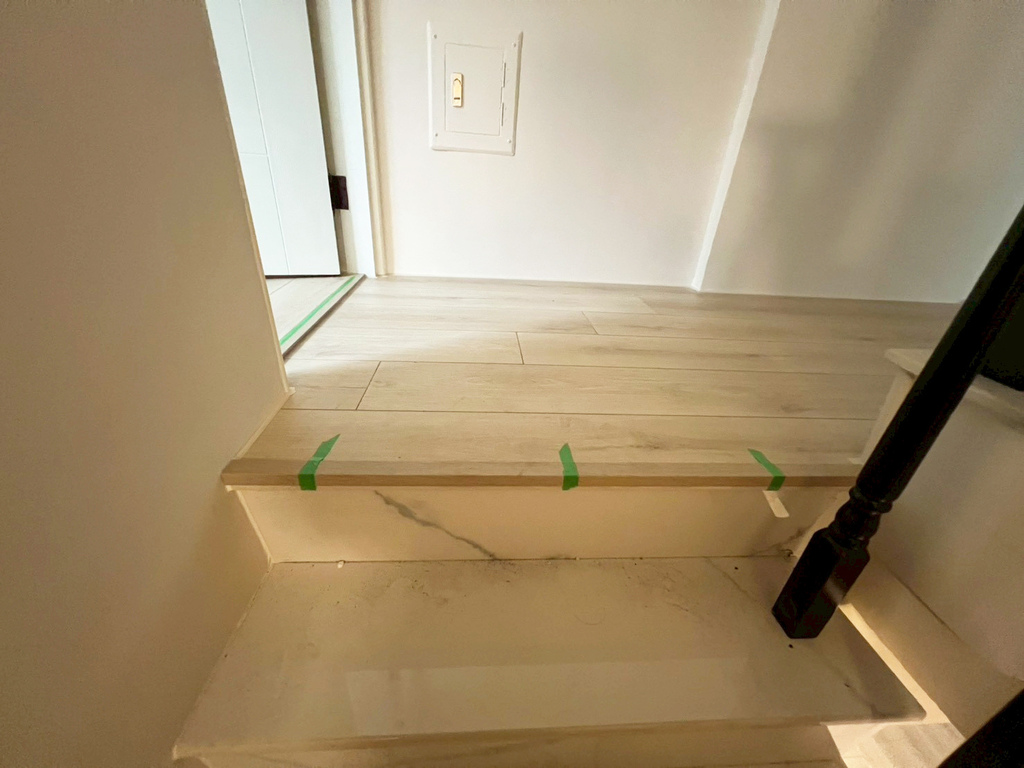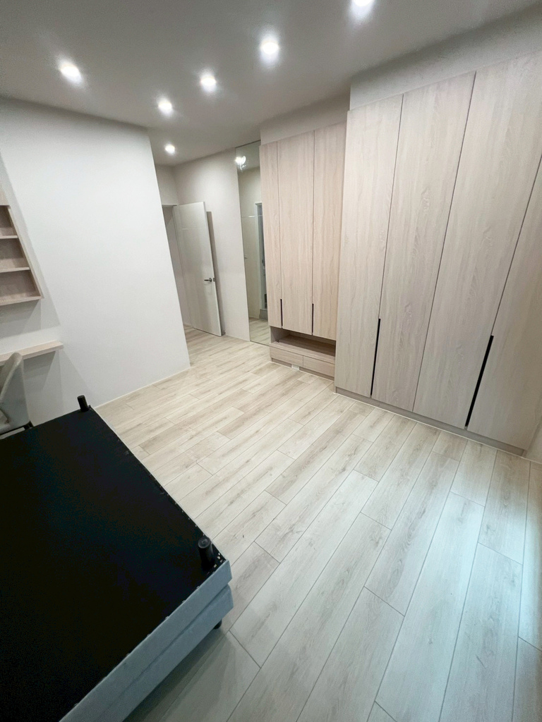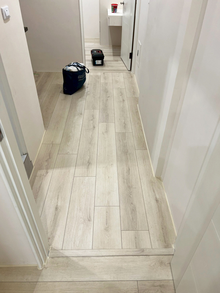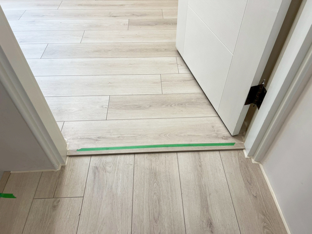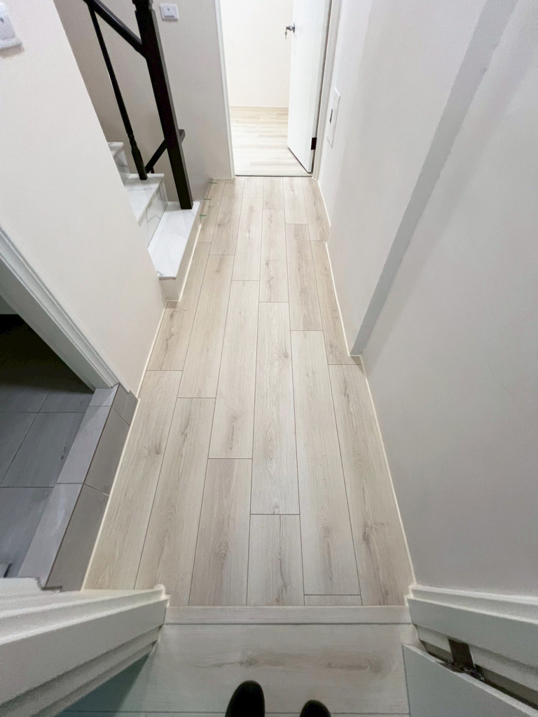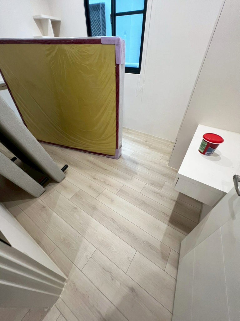 ▼Krono地板是用卡扣式安裝,鄰居說師傅動作俐落、施工乾淨,一天就完工。連壓邊條和收邊線條都處理得超細緻,沒有任何突兀的接縫,看起來整體感十足。