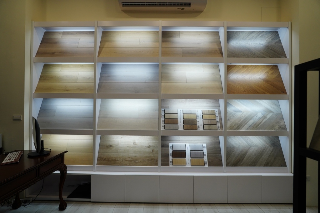 於是帶爸媽到認識的木地板店家挑地板,他們最近在府前路二段開了二店,離大樓很近。