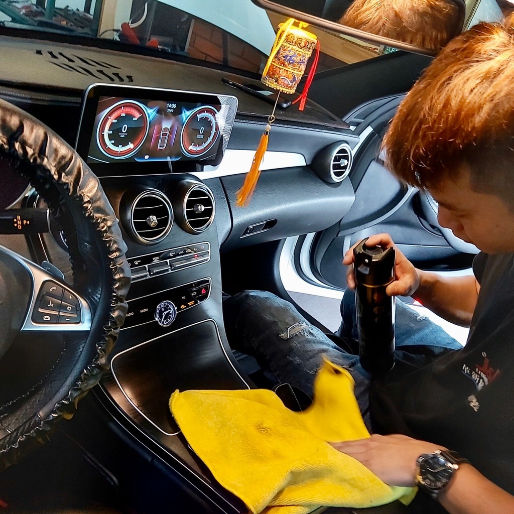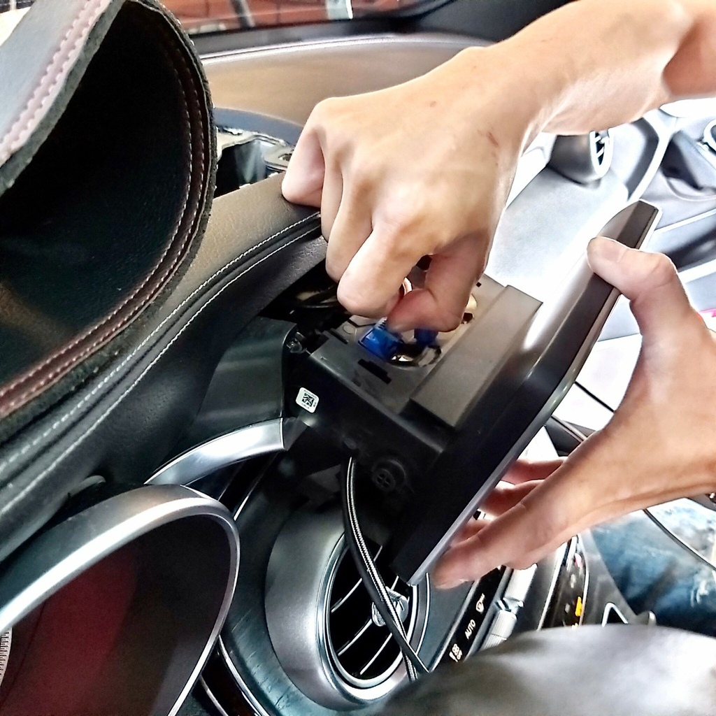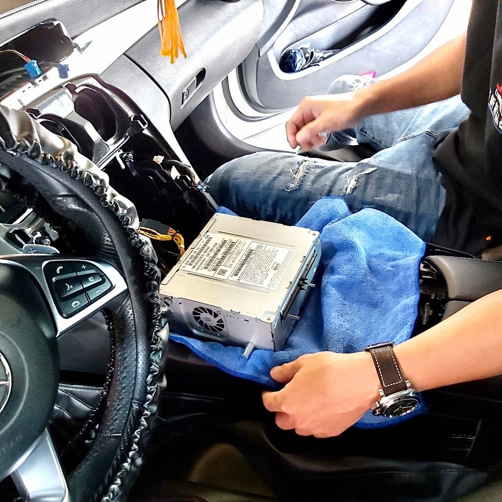 接著就要開始更換安卓機的部分,開始前老闆很貼心的將方向盤跟座位,都使用皮套給覆蓋保護。