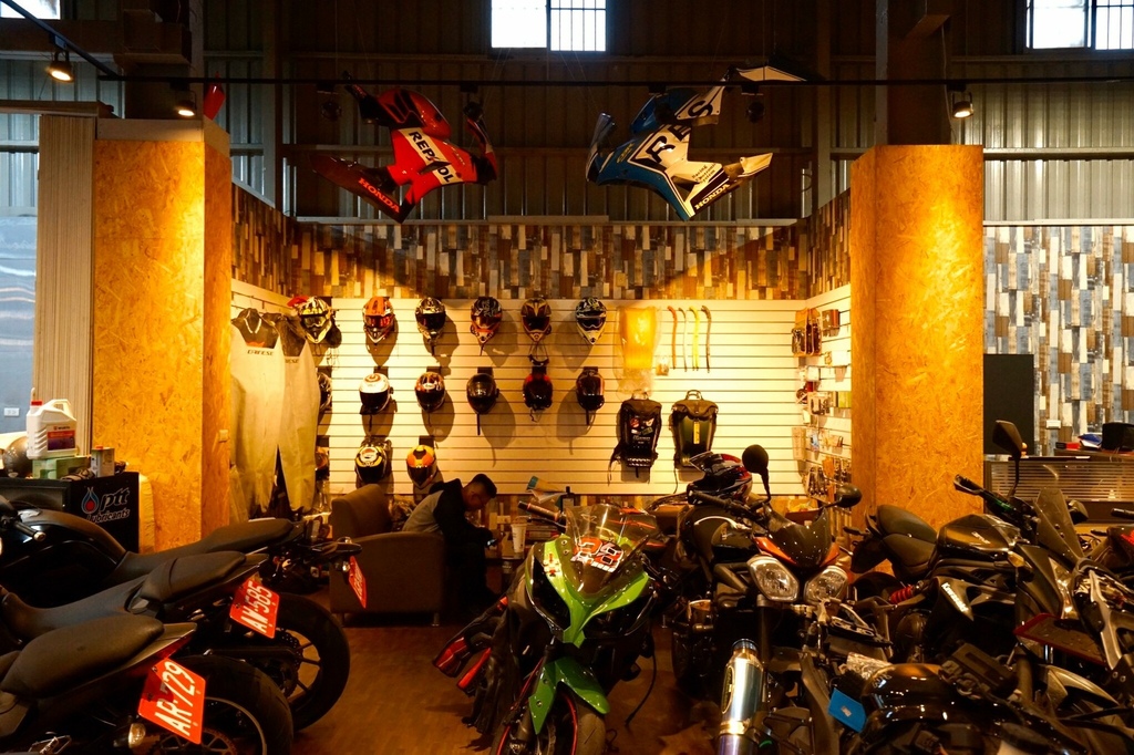 ▽店裡的騎重機真的超級多,滿滿的一整個平面塞滿了好幾台。