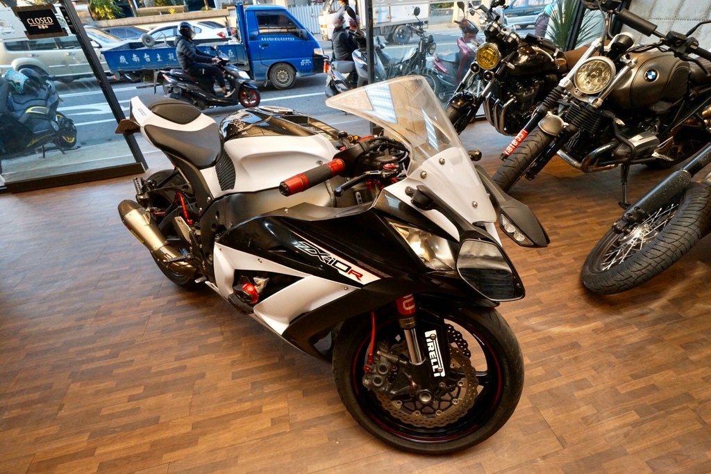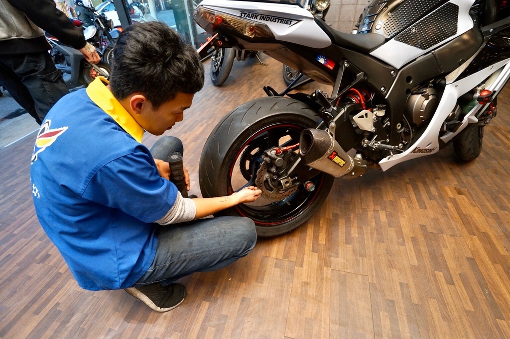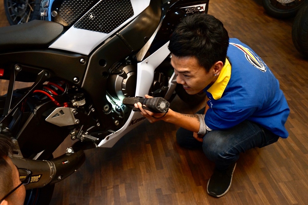 ▽朋友的老戰友,型號:KAWASAKI Ninja ZX-10R,牽來店裡給店家做檢查與估價,而且現場估價比電話估價來得高,牽車子到現場也讓自己更有保障。