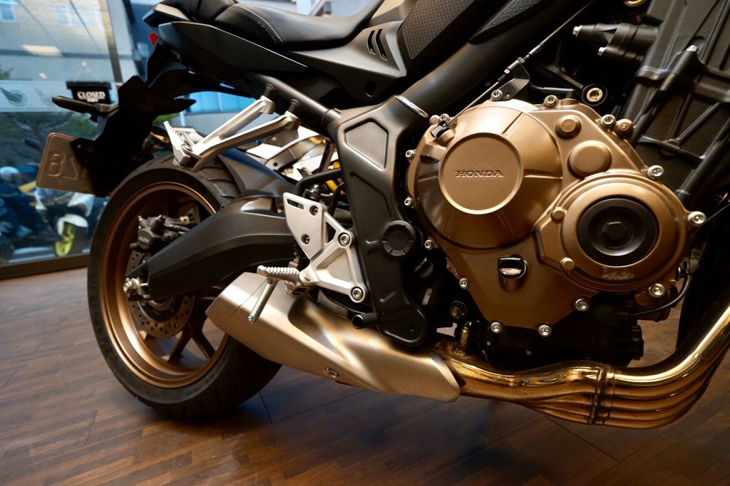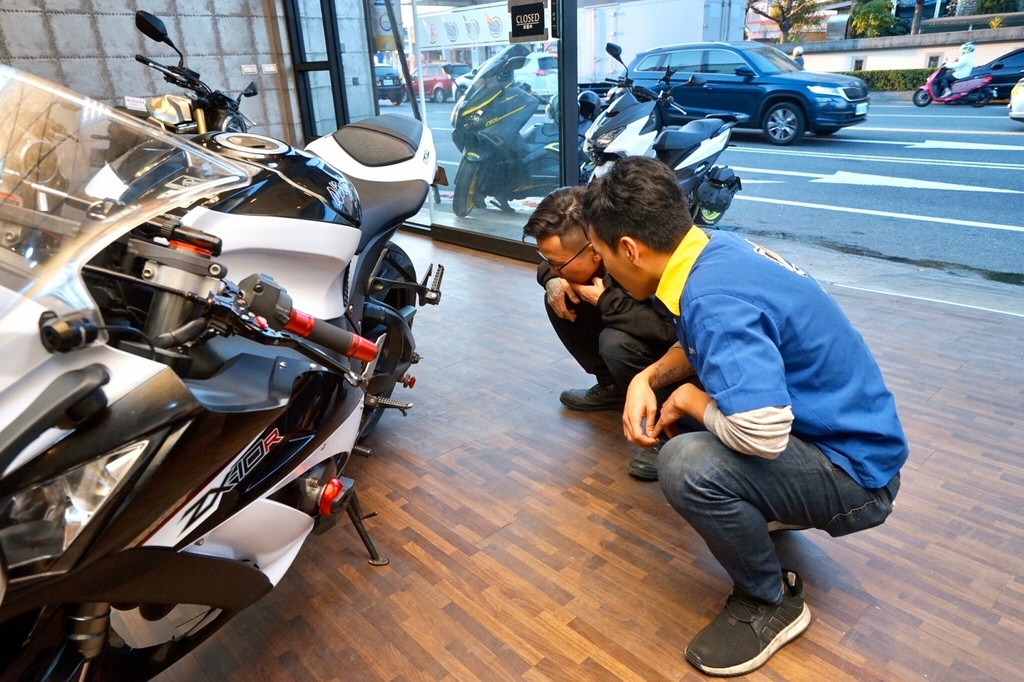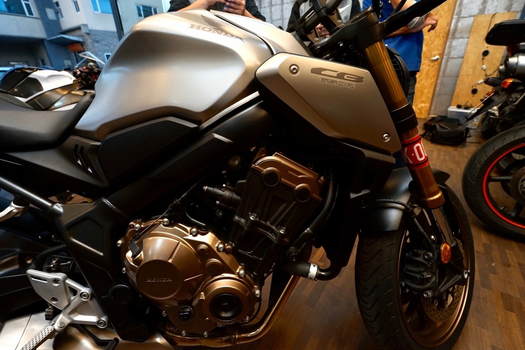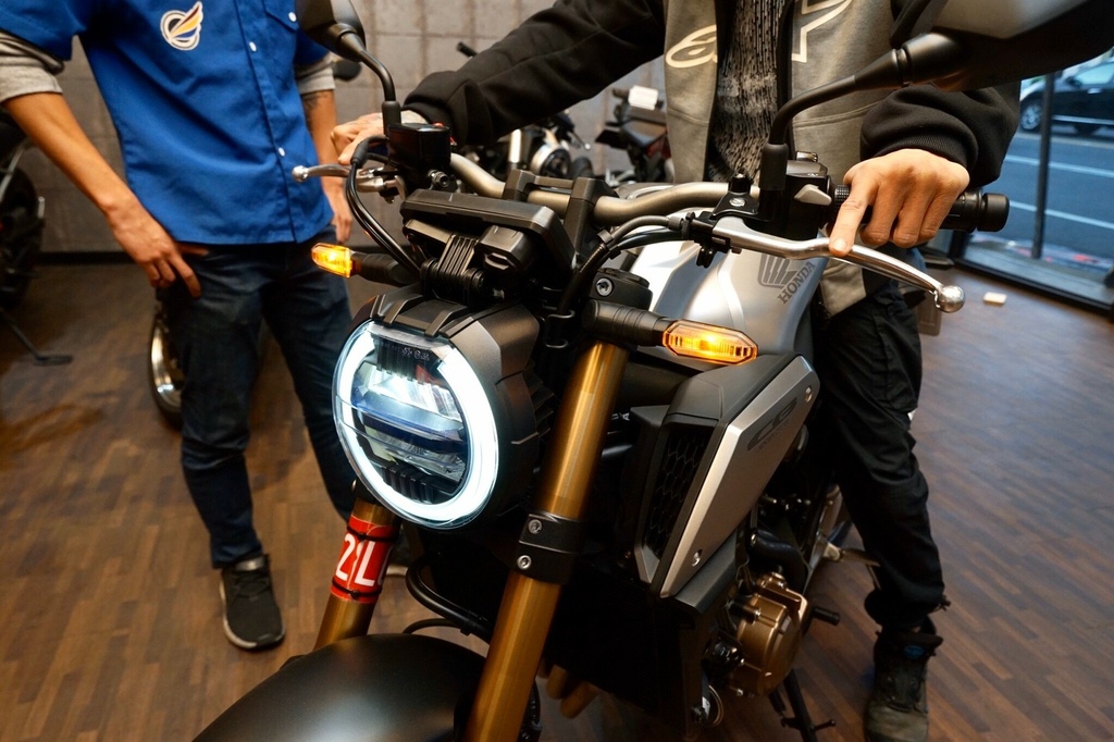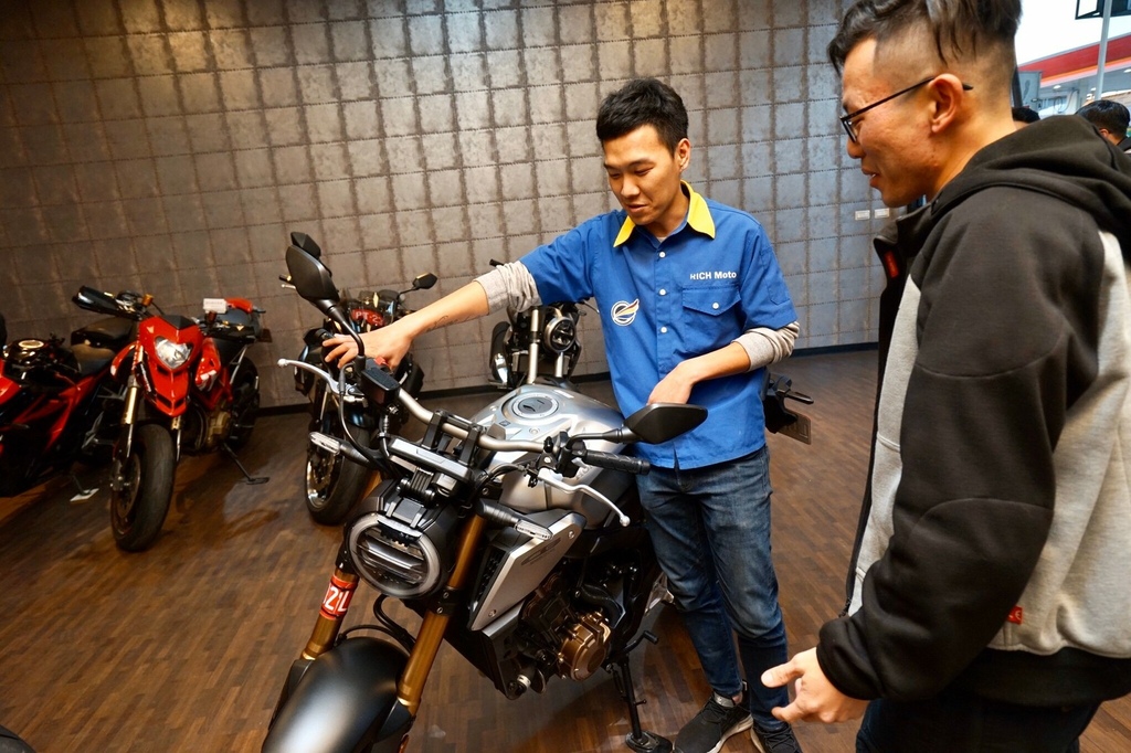 ▽檢查之後我朋友相中一台重機,型號是Honda CB650R。迫不及待叫店員牽來看看。