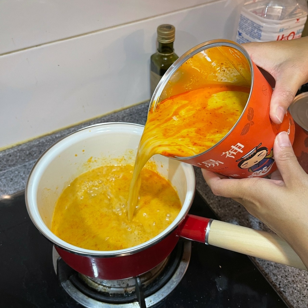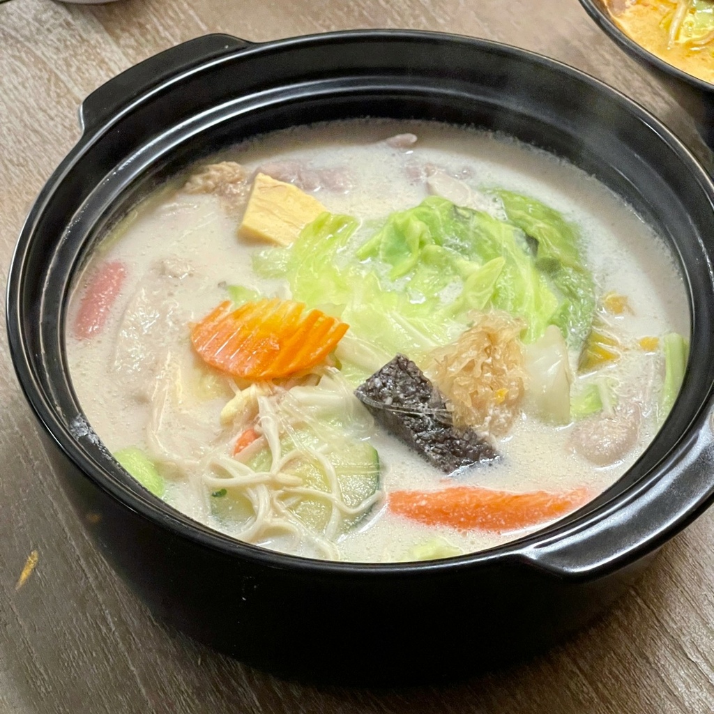 這鍋是孩子首推的鍋底,每次去店裡都要吃,她非常愛喝這鍋牛奶湯。