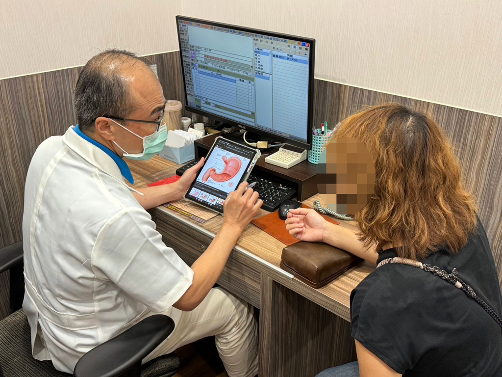 ▼剛進診間,我妹只跟洪醫師說要看腸胃。洪醫師說以脈來說確實腹脹、胸悶、反胃的問題很明顯。