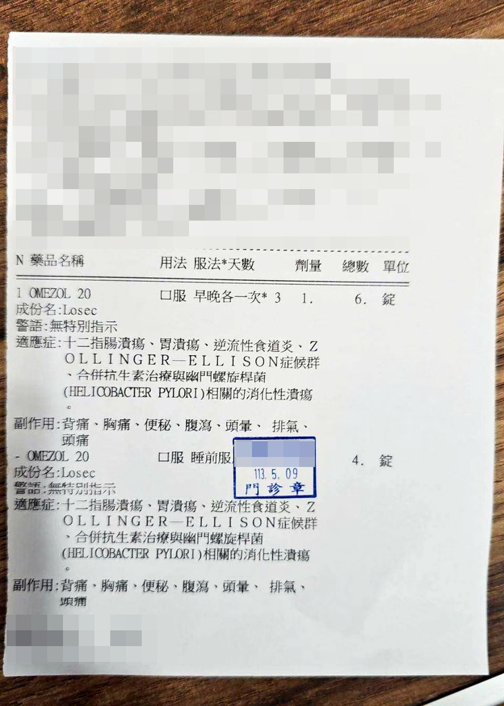 ▼後來反覆發作一段時間後越來越嚴重,胃酸過多、腹脹、胸口燒灼感等等,已經深深影響到日常生活工作,這才去腸胃科就診,照過胃鏡醫師診斷後確定有輕微胃潰瘍及胃食道逆流的情形,並開立藥物治療。